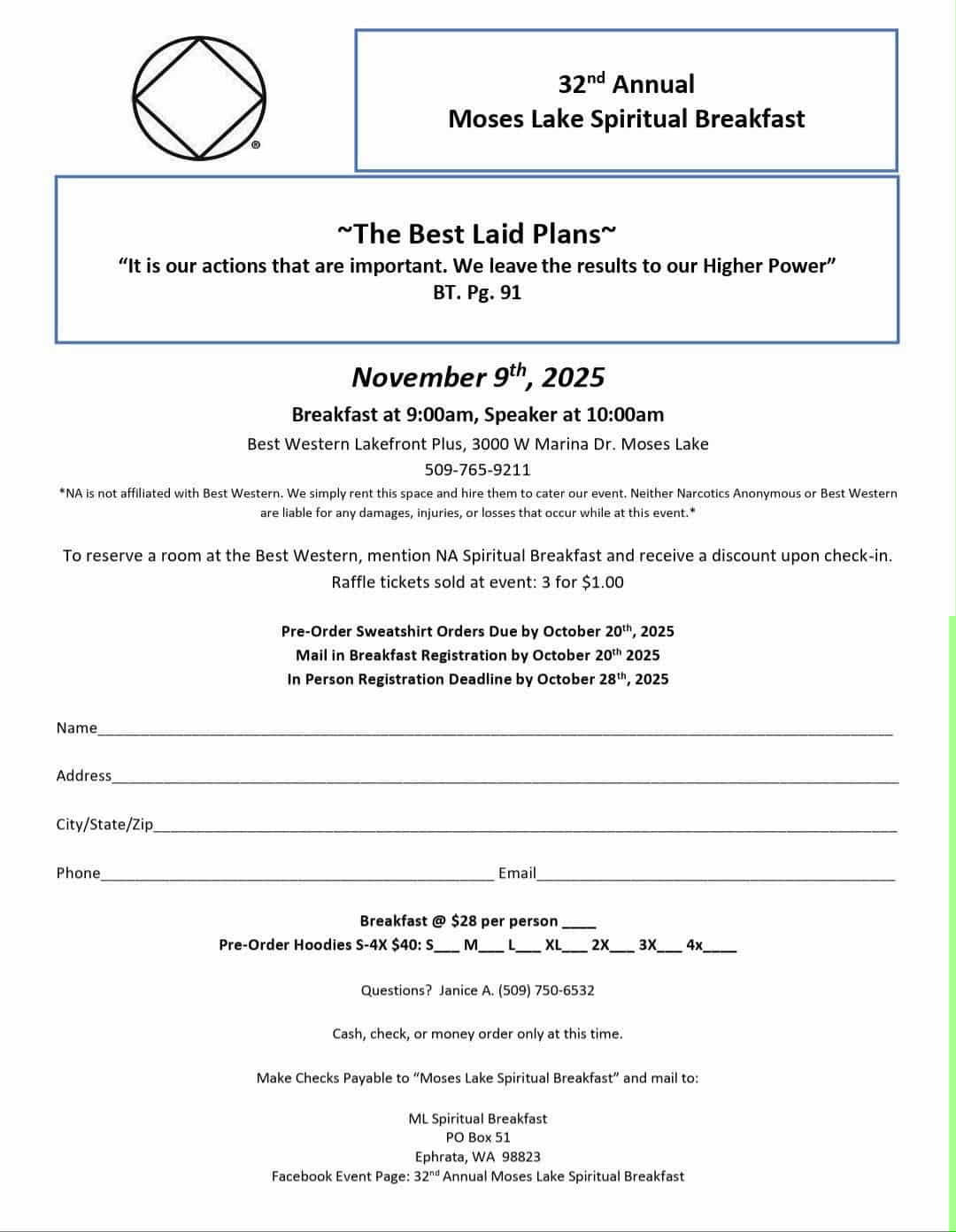 Make checks payable to “Moses Lake Spiritual Breakfast”
